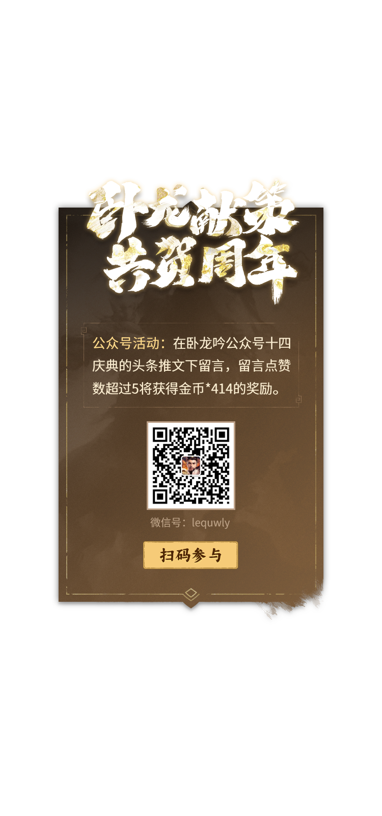 ②官网用户,则可以转发下方周年庆游戏宣传图片到朋友圈,依据赞的数量得金币,每个赞20金币,上限1000金币。点赞完成之后将截图发给在线QQ客服(